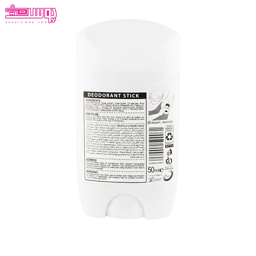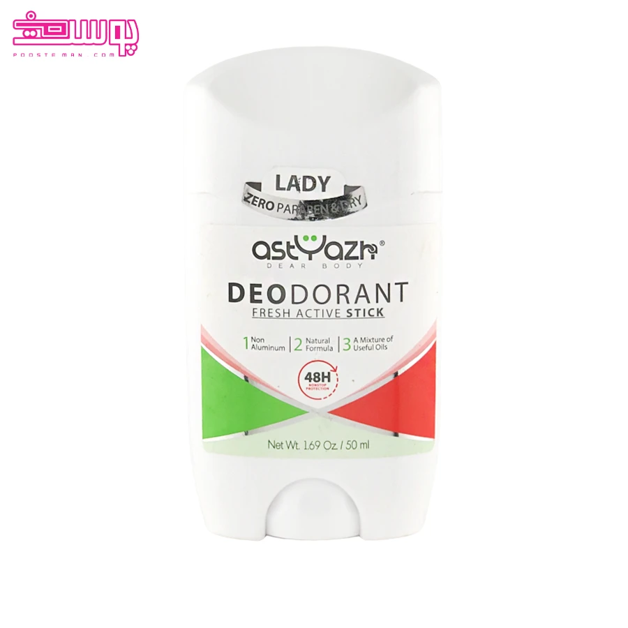 از طرفی دیگر ترکیبات مرطوب کننده این استیک مانند سبوس برنج و شی باتر، پوست ناحیه زیر بغل را نرم و شاداب نگه می دارند و از آسیب دیدن پوست جلوگیری می کنند. استیک دئودورانت زنانه آستیاژا مدل Fresh Active با رایحه ای دلنشین، زنانه و ماندگار، نه تنها حس تازگی و اعتماد به نفس شما را در تمام طول روز حفظ می کند، بلکه با فرمولاسیون فاقد آلومینیومی که دارد انتخابی سالم و ایمن برای استفاده روزانه محسوب می شود.