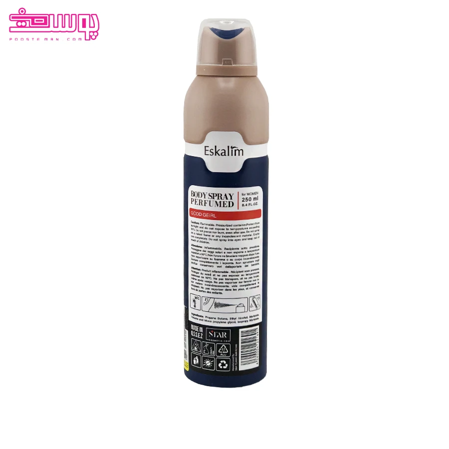 این محصول با داشتن فرمولاسیون تخصصی، برای بانوان طراحی شده و رایحه ای شیک، شیرین و گرم را برای آنان به ارمغان می آورد. اسپری بدن گود گرل اسکالیم محصولی بی نظیر است که بهترین همراه شما در روزهای خنک پاییز و زمستان خواهد بود. این اسپری نه تنها رایحه فریبنده و دوست داشتنی دارد، بلکه با خاصیت خوشبو کنندگی و ضد تعریق، به طور موثر بوی نامطبوع بدن را از بین می برد.