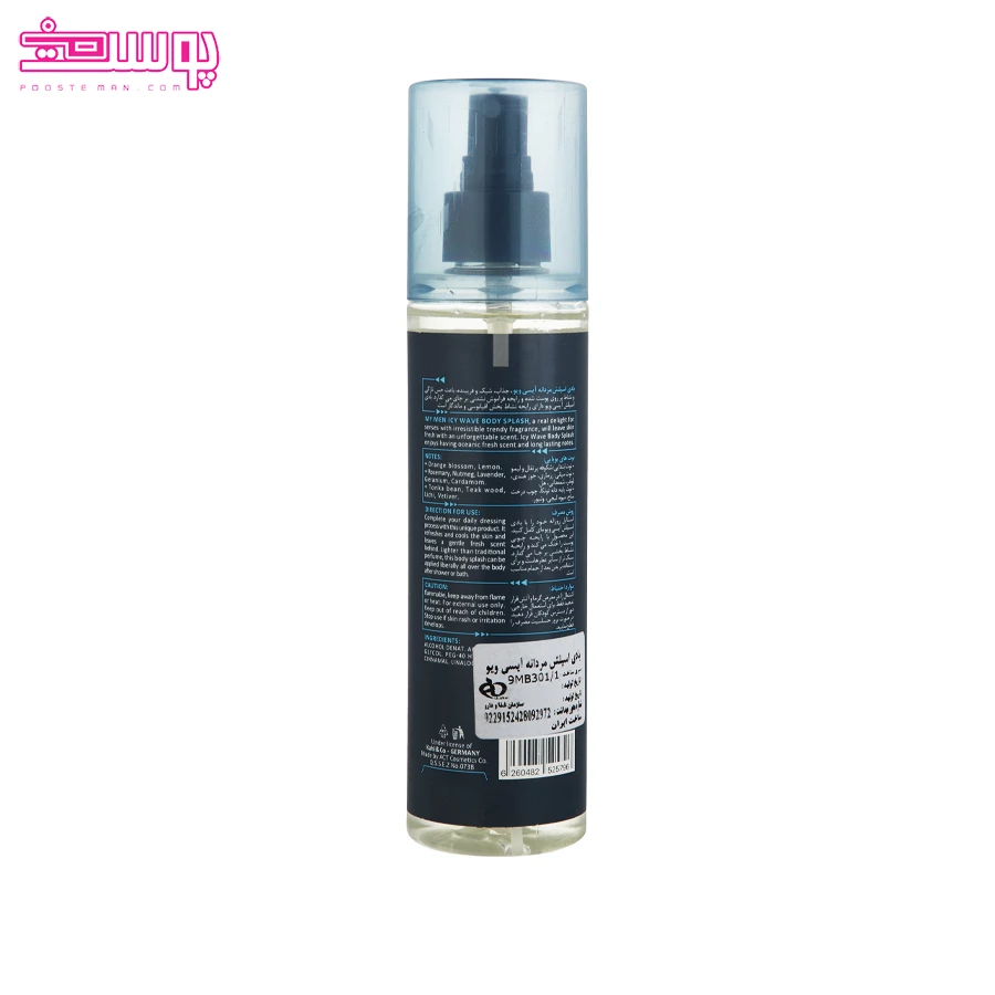 بادی اسپلش آیسی ویو مای محصولی خوشبو کننده و طراوت‌ بخش برای آقایان است که با رایحه‌ ای خنک، اقیانوسی و چوبی، حس تازگی دلپذیری را در طول روز ایجاد خواهد کرد. این محصول برای انواع پوست طراحی شده و انتخابی مناسب برای استفاده روزانه در موقعیت‌ های مختلف محسوب می‌ شود.