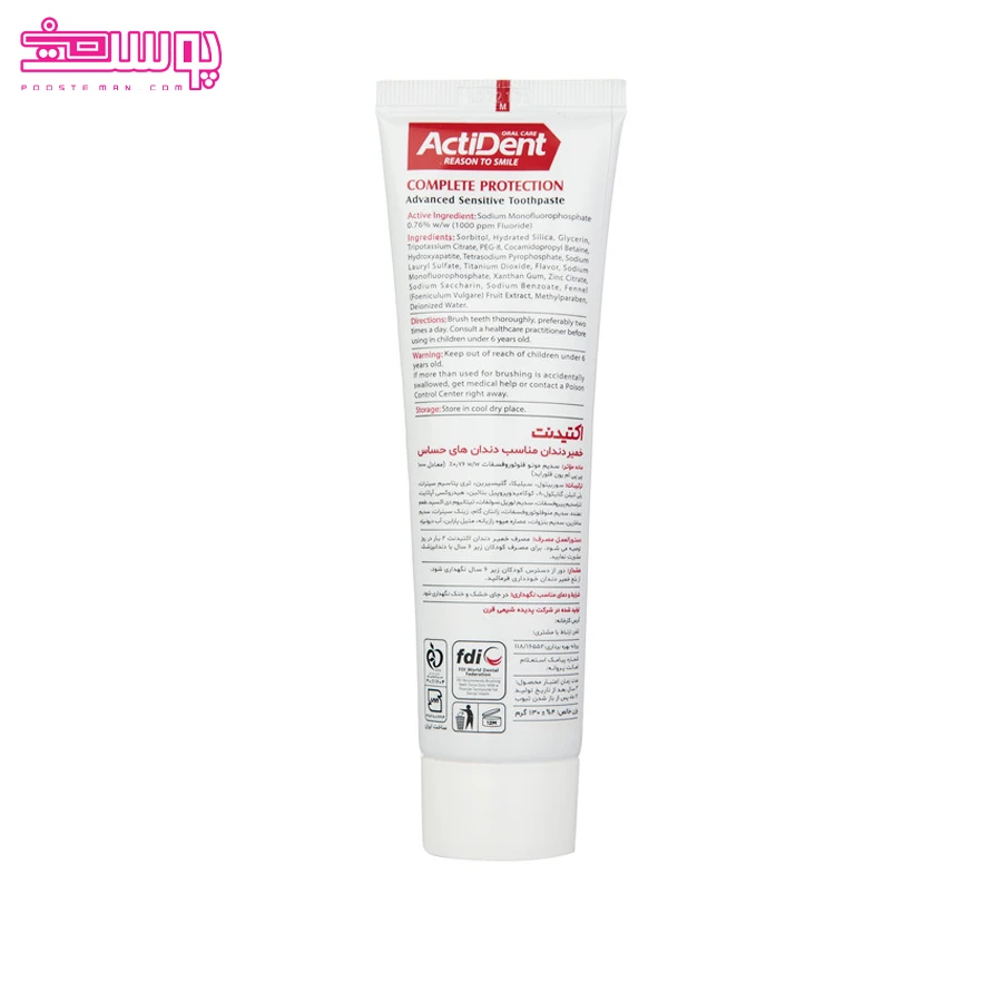 خمیر دندان اکتیدنت مناسب دندان های حساس وزن 130gr