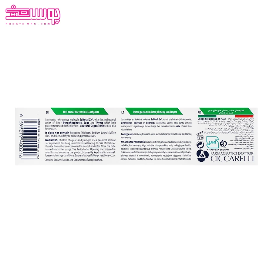 ویژگیهای خمیر دندان ضدجرم پاستا دل کاپیتانو
