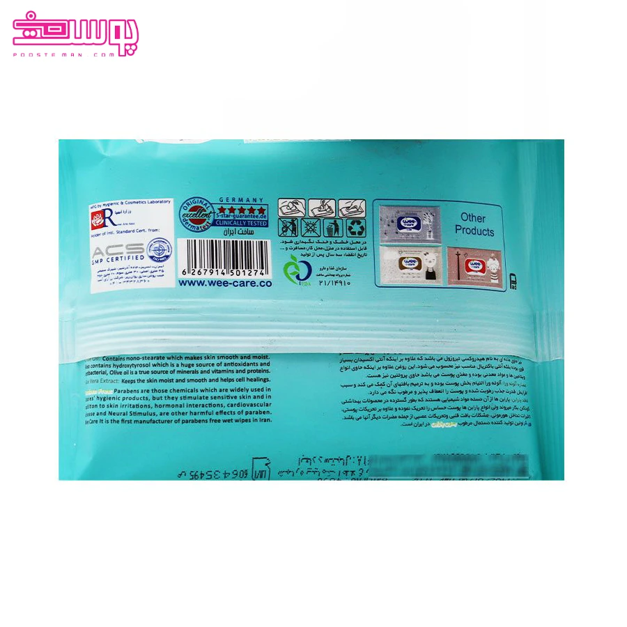 دستمال مرطوب کودک ۲۰ عددی آلوئه ورا و روغن زیتون وی کر