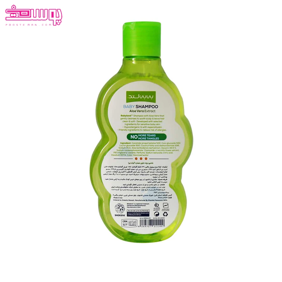 این محصول حاوی عصاره آلوئه‌ ورا بوده که به مرطوب نگه داشتن مو و پوست سر کمک می کند و دارای خواص تسکین‌ دهنده و التیام‌ بخش است. ترکیب شوینده ملایم و نرم‌ کننده شامپو کودک آلوئه ورا بیبی لند، موهای کودک را به‌ آرامی پاکسازی کرده و از خشکی یا آسیب دیدن جلوگیری می‌ کند. این شامپو فاقد ترکیبات تحریک‌ کننده بوده و با pH سازگار با موی کودک طراحی شده است. فرمول ضد حساسیت آن نیز باعث می‌ شود تا هنگام شستشو، هیچ سوزش و اشکی ایجاد نشود و پوست سر لطیف کودک به خوبی محافظت گردد.