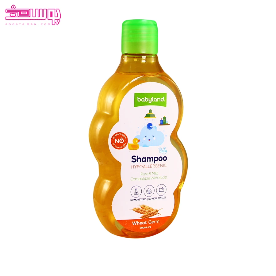 شامپو بچه پروتئینه جوانه گندم بیبی لند به طور ویژه برای پوست و موی حساس کودکان فرموله شده است و با شویندگی ملایم، موها را به آرامی تمیز می کند.