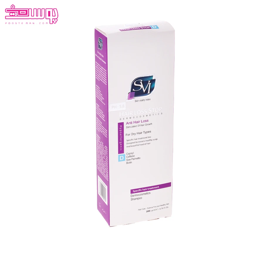 شامپو ضد ریزش موی خشک اس وی آی با فرمولاسیون تخصصی برای موهای خشک و آسیب دیده طراحی شده و مناسب استفاده روزانه است.