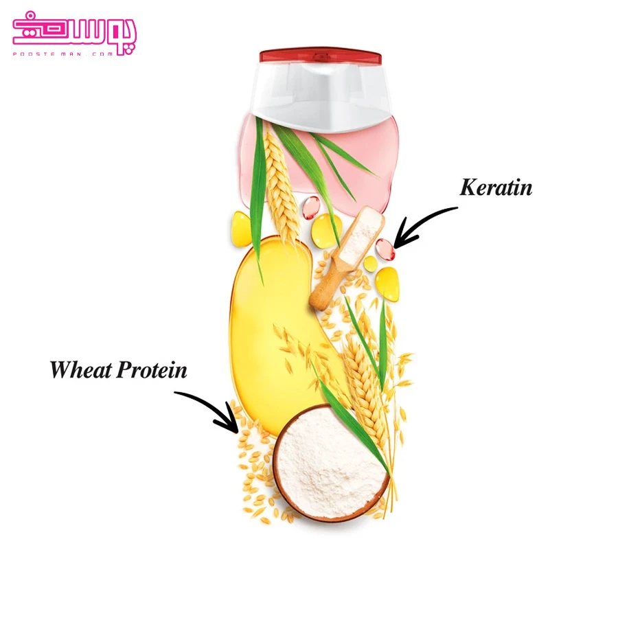 - حاوی کراتین، پروتئین گندم و ویتامین B5