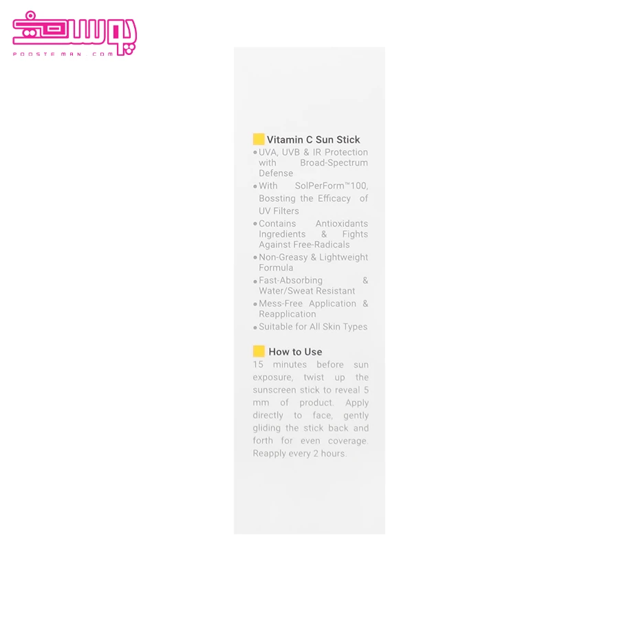 • ضد آفتاب استیکی با تمدید آسان، تمیز و بدون دخالت دست