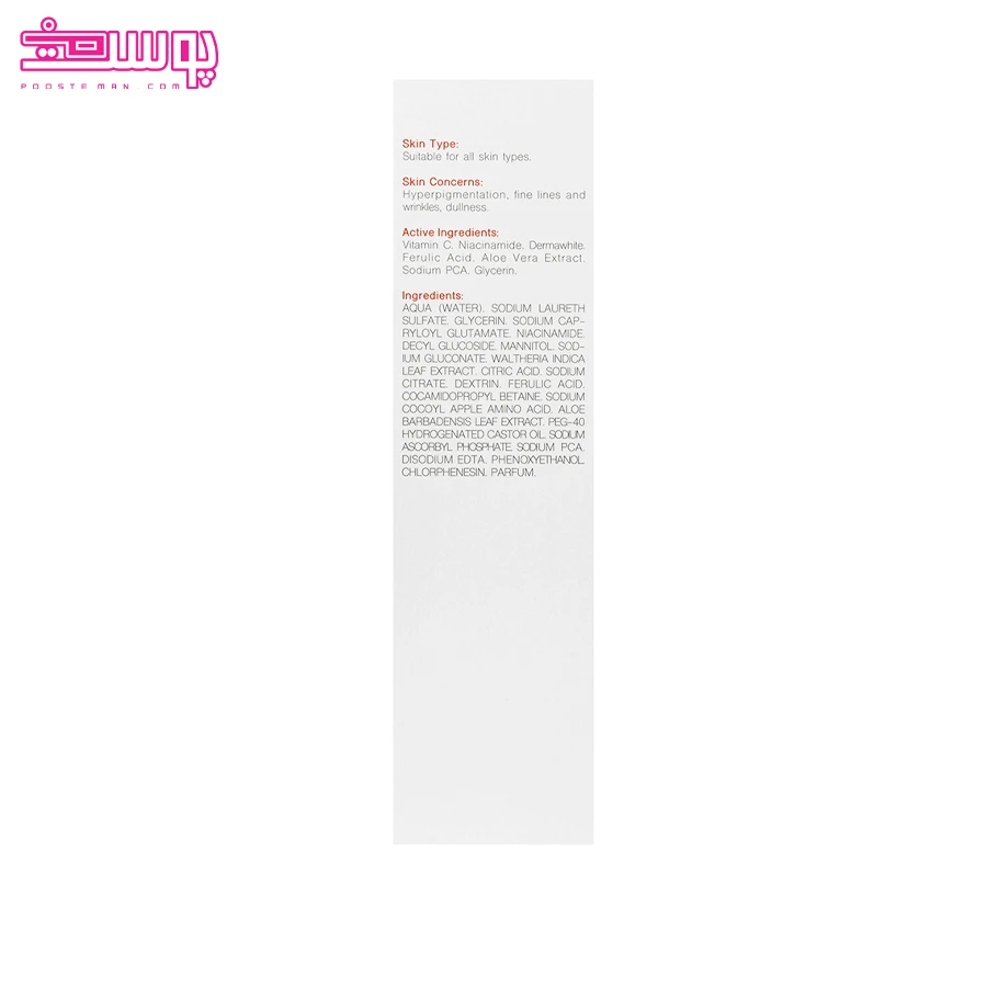 سدیم PCA ,گلیسیرین ,فرولیک اسید ,کمپلکس درماوایت ,نیاسینامید ,ویتامین C |