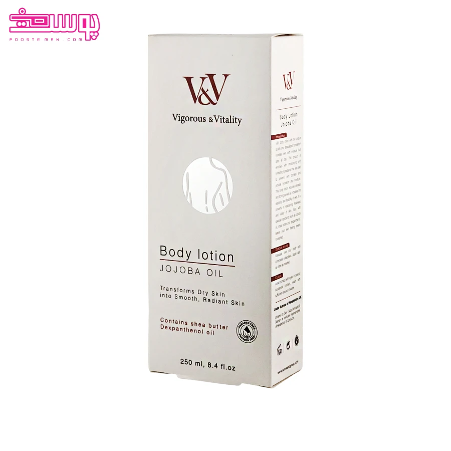 لوسیون بدن روغن جوجوبا وی اند وی یک مرطوب کننده مغذی و سبک است که به طور ویژه برای تقویت نرمی و انعطاف پذیری پوست های خشک طراحی شده است.