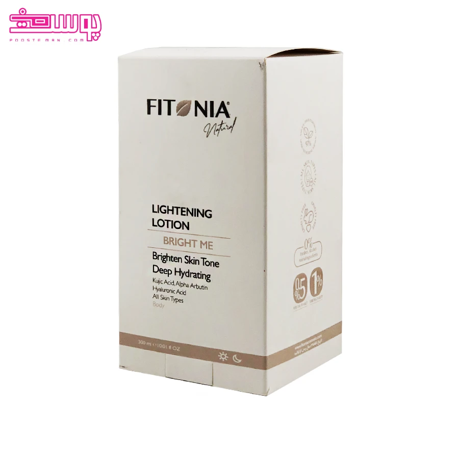 کسانی که به دنبال رطوبت رسانی و روشن سازی همزمان هستند و می خواهند تیرگی نواحی حساس یا بدن خود را کاهش دهند، می توانند از این لوسیون بدن استفاده کنند. لوسیون روشن کننده بدن فیتونیا تیرگی نواحی حساس یا بدن را بهبود بخشیده و برای افراد با پوست های دارای لک یا مستعد ایده آل است. فرمولاسیون این لوسیون فاقد الکل، پارابن و هرگونه ترکیبات مضر بوده و برای تمام سنین، خانم ها و آقایان مناسب می باشد