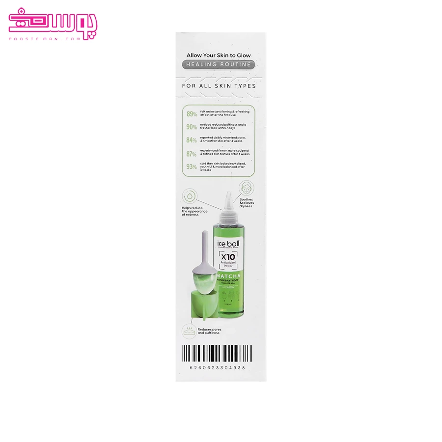 محلول آبرسان و روشن کننده ماچا آیس بال محصولی کامل برای مراقبت از انواع پوست صورت و گردن به شمار می رود که برای آبرسانی، شفافیت و افزایش طراوت پوست طراحی شده است.