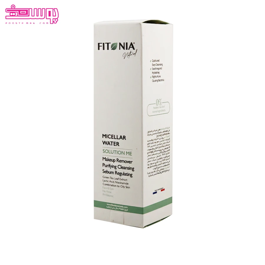 این محصول با فرمولاسیون پیشرفته خود، به راحتی آرایش، آلودگی ها و چربی اضافه را پاک نموده و در عین حال به تنظیم و کنترل ترشح چربی نیز کمک می کند. ترکیباتی مانند برگ چای سبز و نخل اره ای در کنار نیاسینامید و لاکتیک اسید در میسلار واتر فیتونیا باعث می شوند تا این محصول علاوه بر خاصیت ضد جوش و کنترل آکنه، منافذ پوست را کوچک کرده و موجب یکدست شدن بافت پوست شود.
