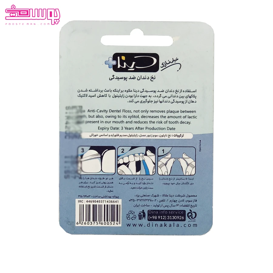 نخ دندان ضد پوسیدگی دینا محصولی موثر برای حذف پلاک ها و آلودگی های جمع شده در فواصل بین دندانی می باشد که به پاکسازی کامل تر دندان ها کمک می کند.