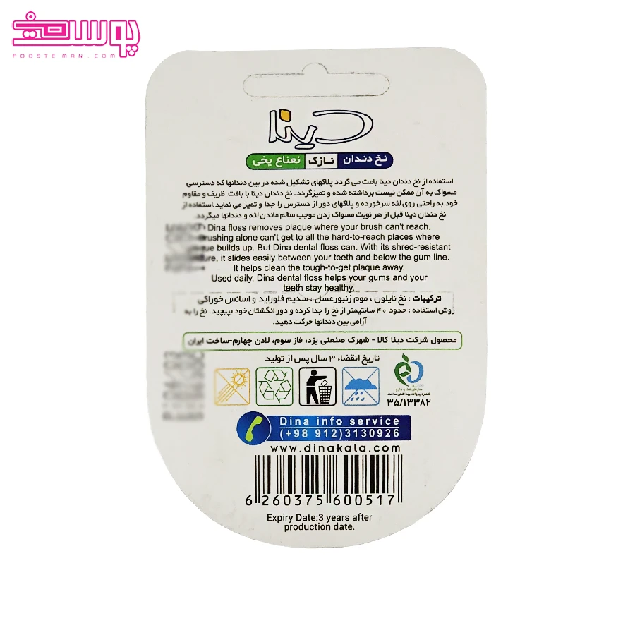 نخ دندان نعناع یخی دینا محصولی کاربردی برای از بین بردن پلاک‌ ها و آلودگی‌ های جمع شده بین دندان‌ ها است که به حفظ بهداشت کامل دهان کمک می‌ کند.
