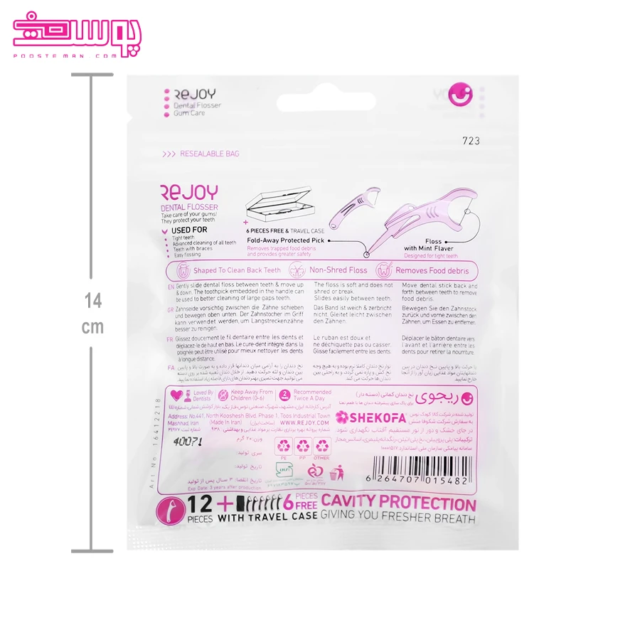 نخ دندان کمانی دسته دار ریجوی دارای با یک جعبه محافظ آنتی باکتریال عرضه می شود که هم حمل آسان و بهداشتی را ممکن می کند و هم نخ ها را از آلودگی محافظت می نماید. هر بسته این محصول شامل ۱۲ عدد نخ دندان با کیفیت بالا و قیمت مقرون به صرفه بوده و برای استفاده روزانه بزرگسالان انتخابی کاملا حرفه ای و اقتصادی محسوب به شمار می رود.