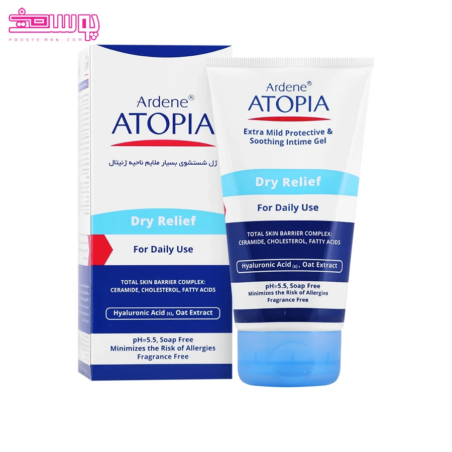 ژل شستشوی بسیار ملایم درای ریلیف آردن آتوپیا محصولی مناسب برای بانوان و دوشیزگان بالای 12 سال است که با فرمولاسیون هیپوآلرژنیک و ملایم برای پوست حساس طراحی شده و محافظت کامل از پوست ناحیه تناسلی را تضمین می‌ کند.