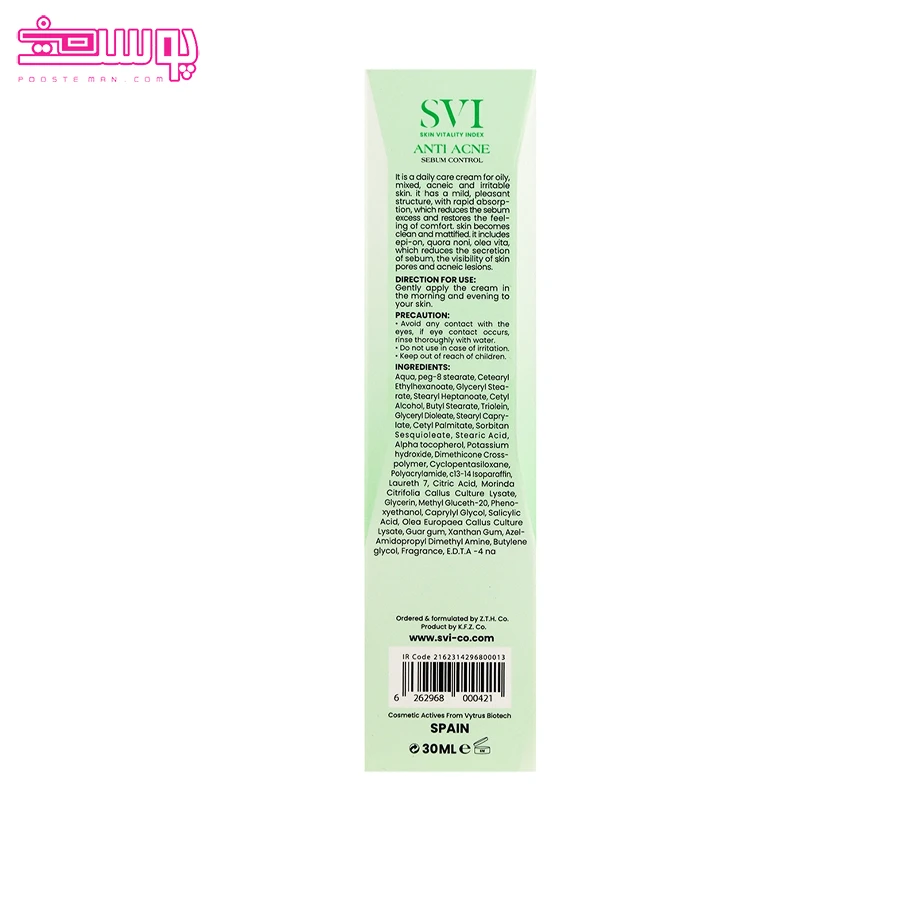کرم آنتی آکنه اس وی آی حجم 30ml