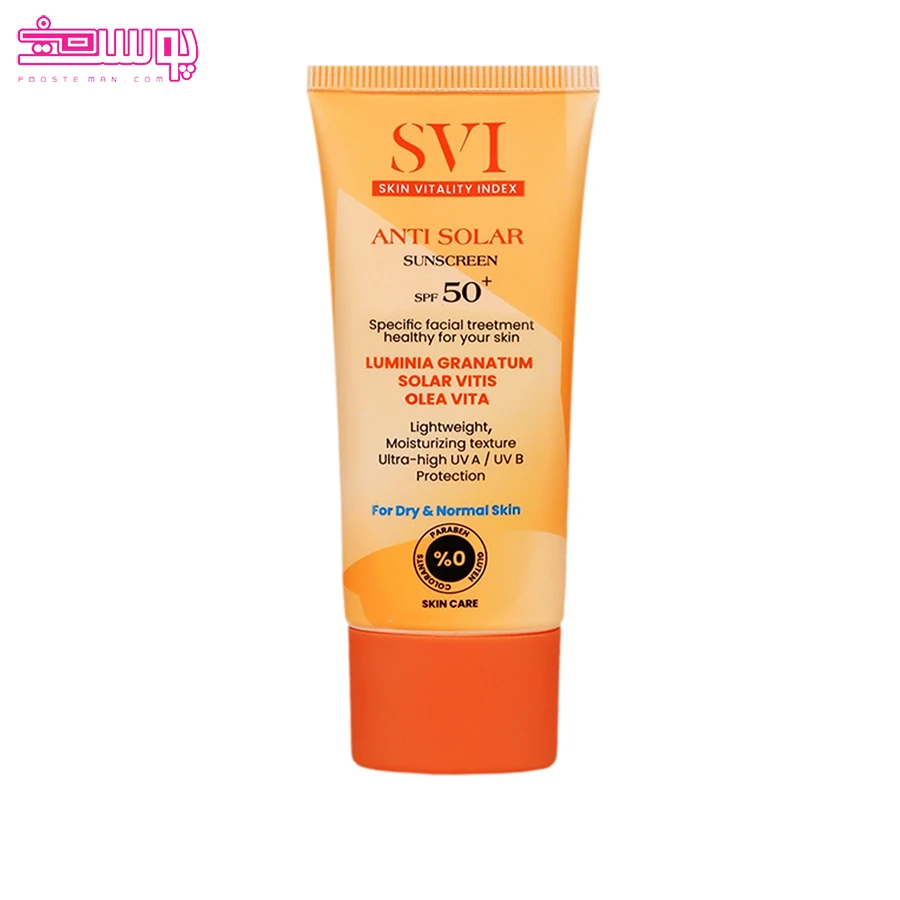 کرم ضد آفتاب بی‌ رنگ پوست خشک اس وی آی محصولی تخصصی برای محافظت روزانه از پوست‌ های خشک و معمولی است.