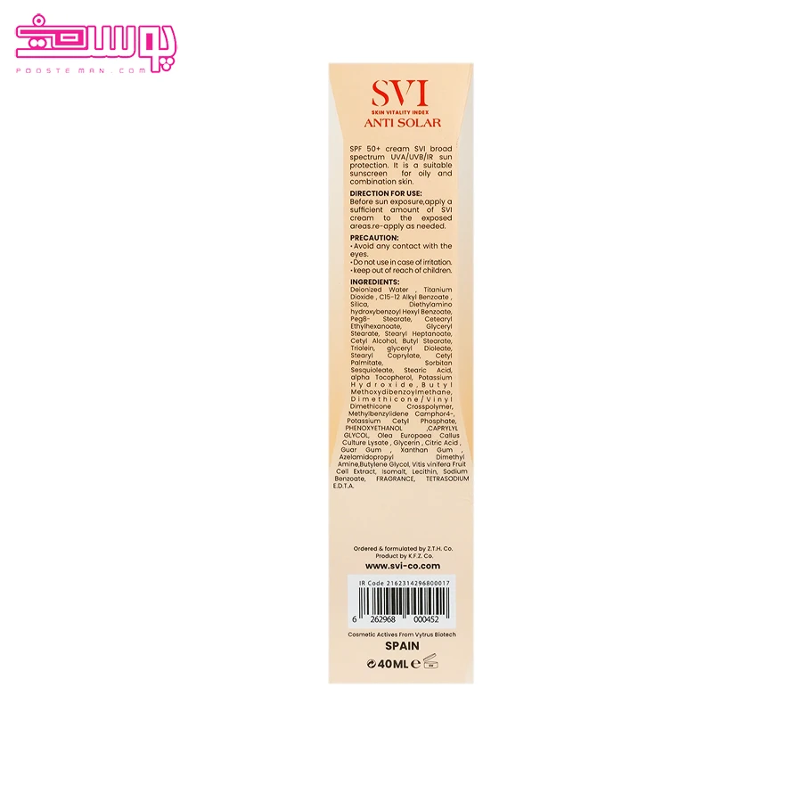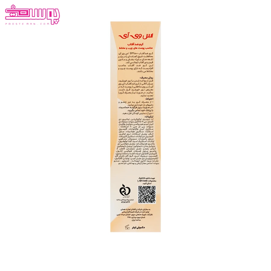 کرم ضد آفتاب بی رنگ پوست چرب اس وی آی حجم 40ml
