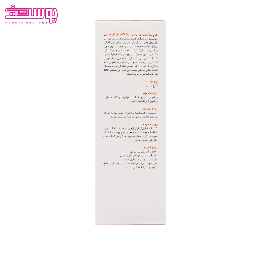 ضد آفتاب فیزیکال رنگی تن برایت SPF50 برایت مکس حجم 40ml
