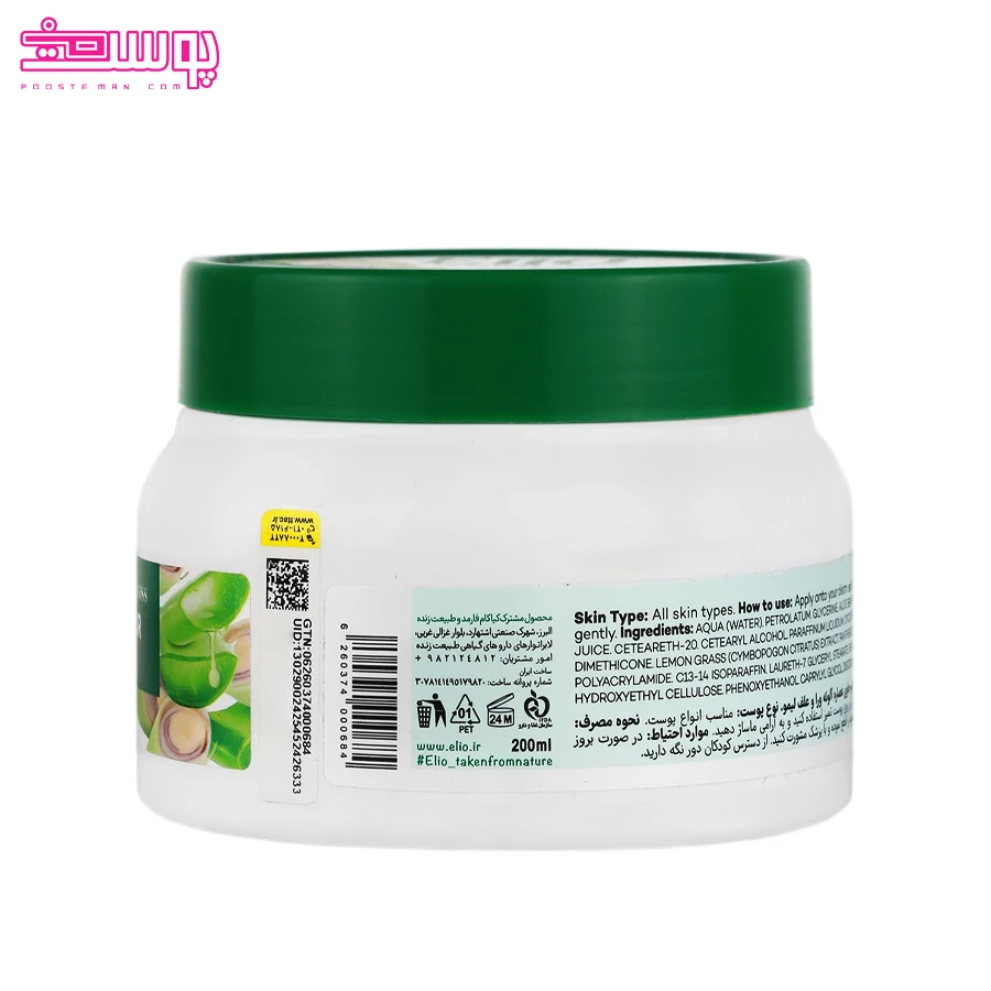کرم مرطوب کننده آلوئه ورا و علف لیمو الیو حجم 200ml