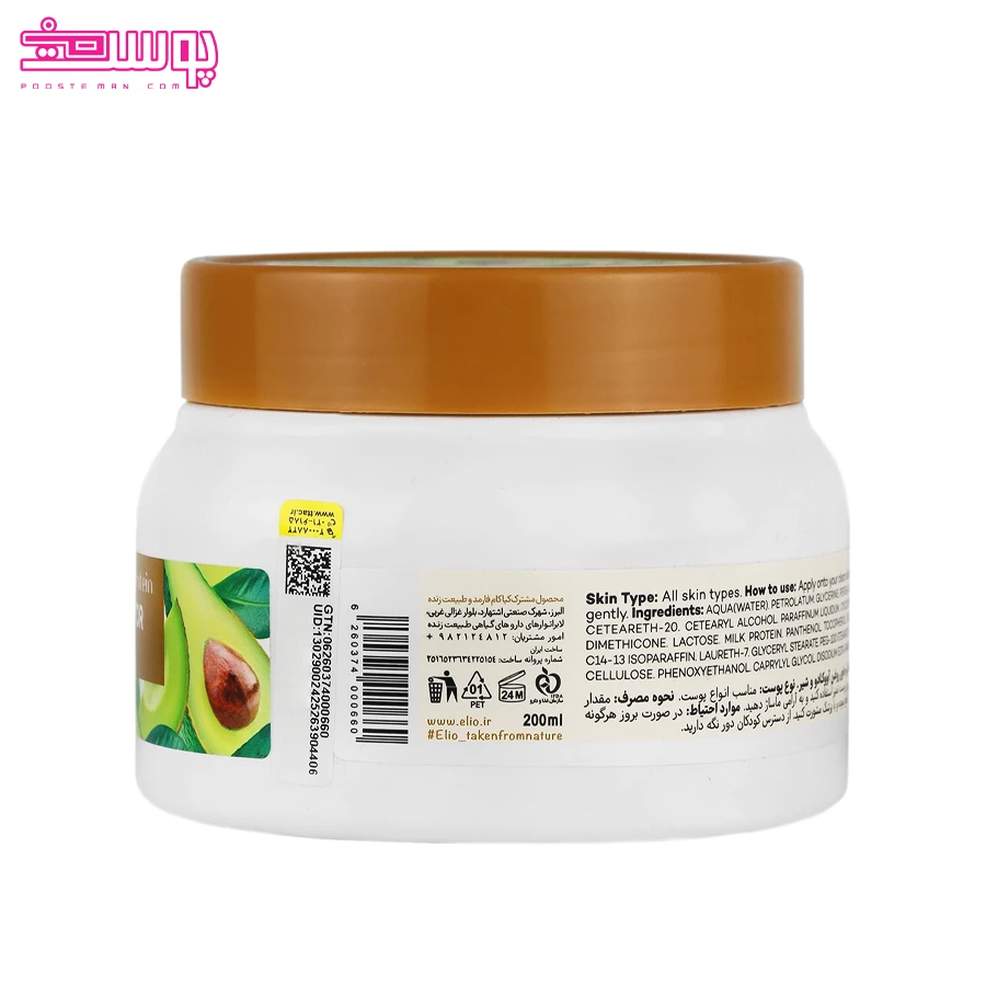 - حاوی عصاره آووکادو، پروتئین شیر، و ویتامین های B5 و E