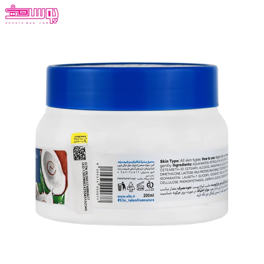 کرم مرطوب کننده روغن نارگیل و شیر الیو حجم 200ml